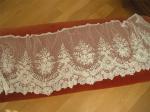 Comments: Wide, long Brussels application on machine net. Simple undulating design of flowers and leaves, nice and open. The condition appears very good – just few pinholes in the net toward one end.