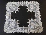 Comments: This rectangular shawl is large and good, but unfortunately with some damage to the ground. Hard to repair since the ground was made in one piece over an extensive area. It does go to show the ambitious scale of some of these laces. The design is a bit conventional, but well made.