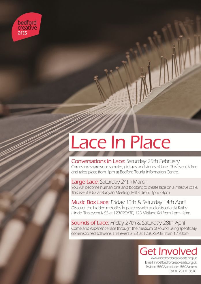 These four events are designed to provide new artistic inspiration from Bedford’s long history of bobbinlace. Two modern artists will create works involving public participation in their design and execution.