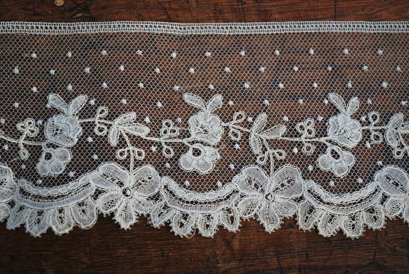 http://tinyurl.com/77d3tu3 ANTIQUE BRUSSELS BOBBIN LACE PT DE ESPRIT PRETTY TRIM