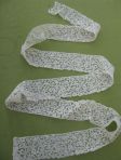 Comments: The seller has several other lengths of this lace posted, see also 350534421875 and 350534424952. The design has a kind of 5-hole ground, not unknown in Valencienne experimentation. The motifs are quite loosely worked, and the design a little primitive. I’m wondering just how true to early Valenciennes this is, and if perhaps it coud be something else. Condition is very good.
