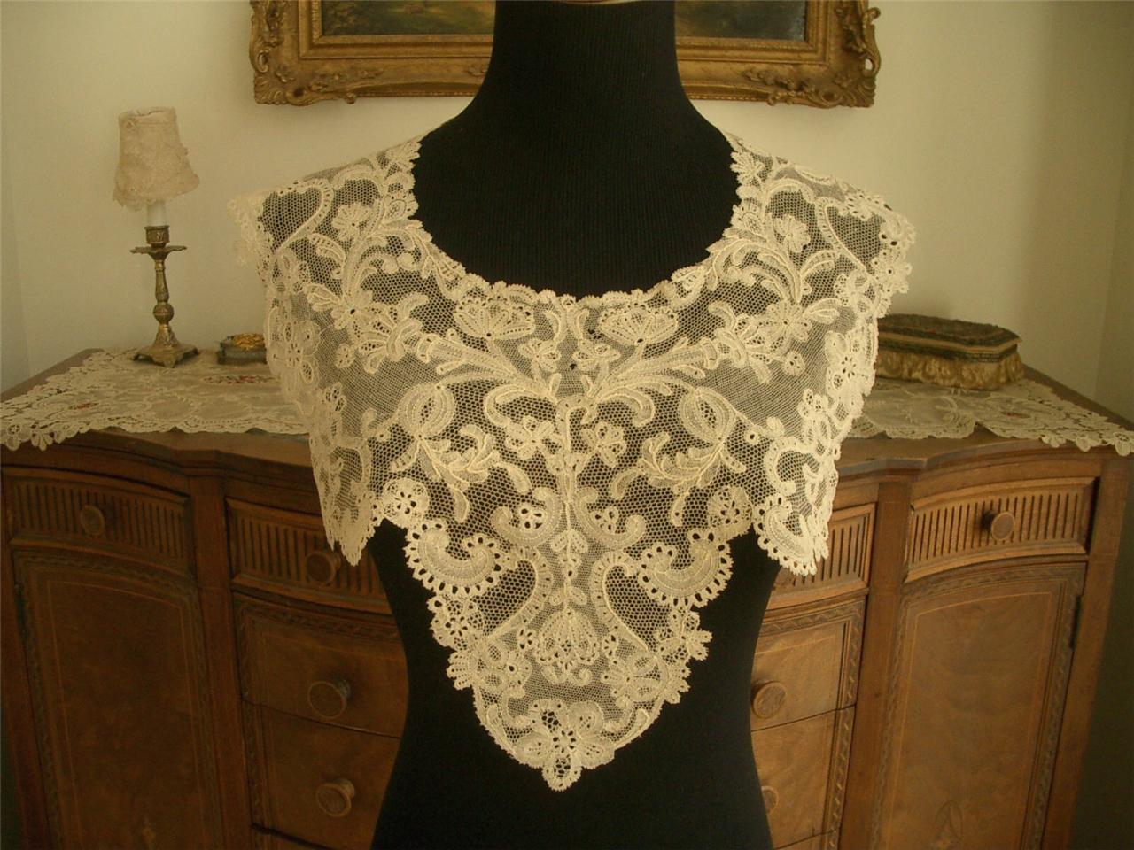 http://tinyurl.com/7jd37sl SUPERB LG HANDMADE Antique Vtg VIEUX FLANDERS BOBBIN LACE COLLAR DRESS FT*2 Of2