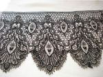 Comments: A black silk Le Puy guipu Ithas typical elements of the small flowers on a point ground cartouches, and the picoted hexagonal bride structure. This one minimized the bare ground at the top and done a nice job on the deep points along the border. Very good condition, I don’t see anything wrong from the photos.