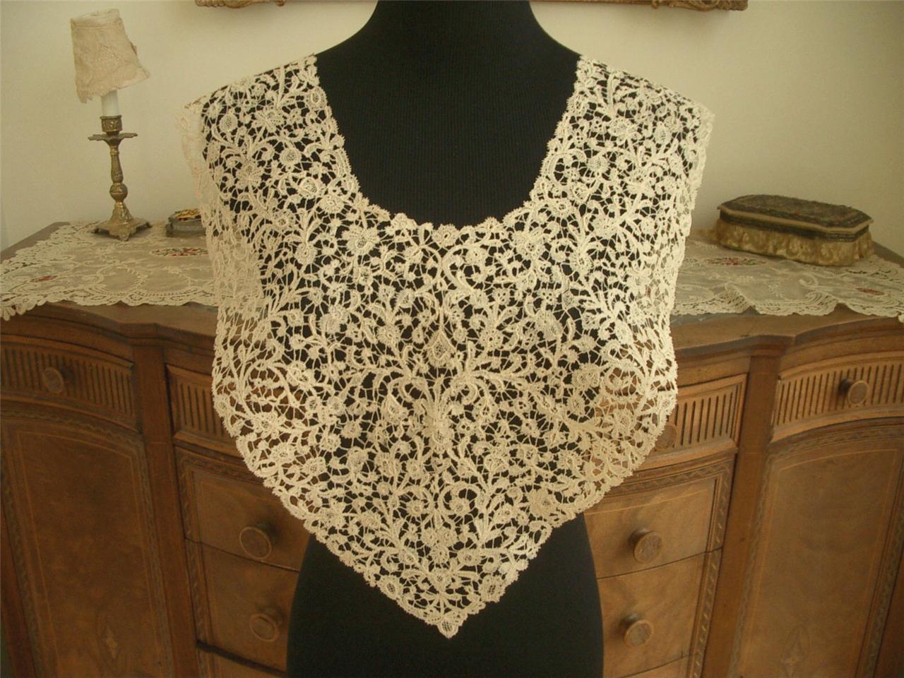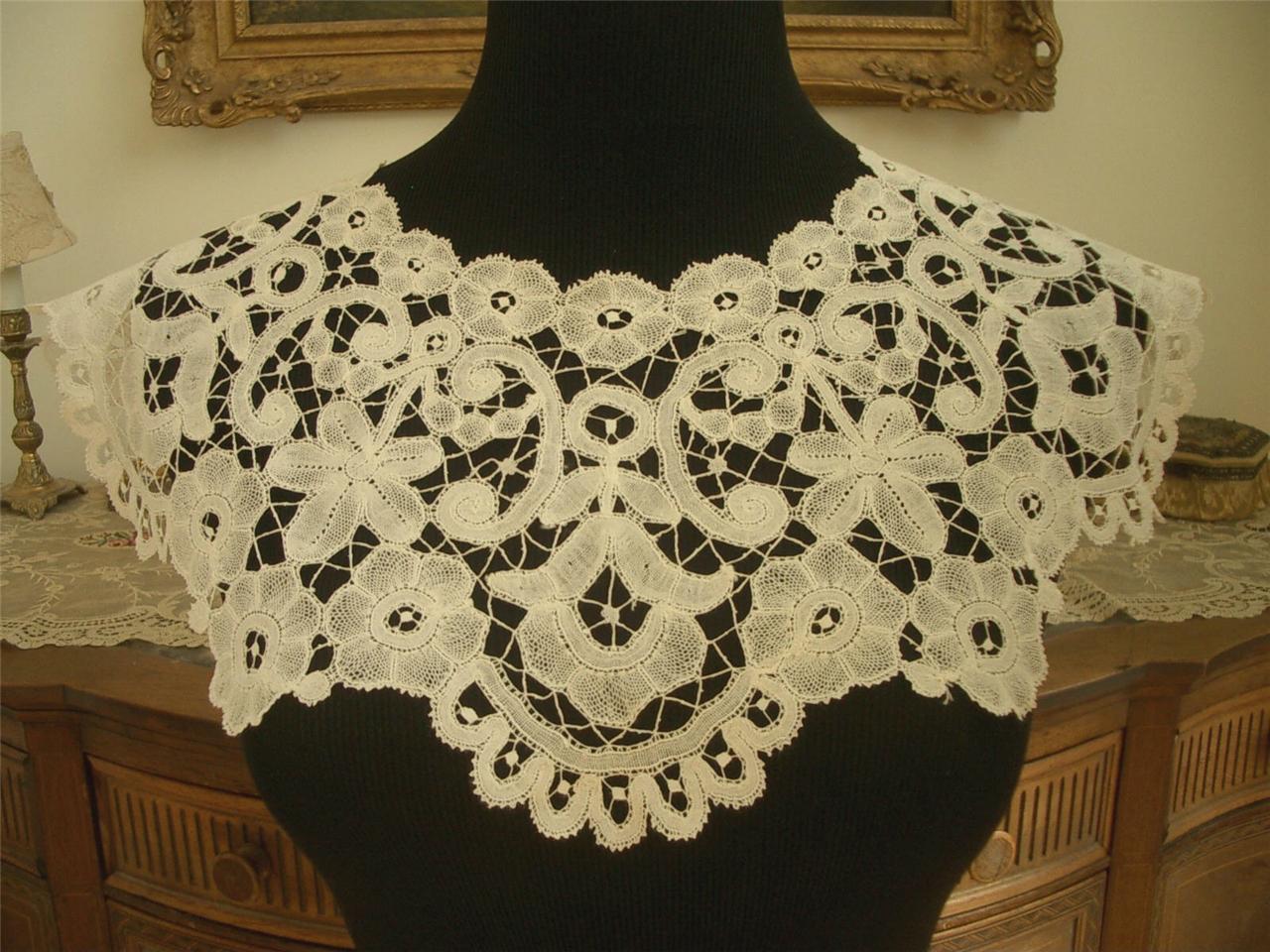 http://tinyurl.com/86u8lds HandMade Antique Vtg BRUGGE BOBBIN LACE COLLAR DRESS FRONT