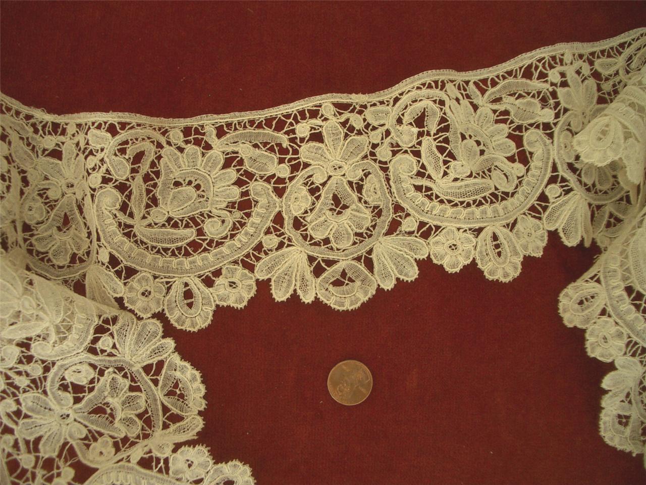http://tinyurl.com/7j8l62j WIDE HANDMADE Antique Vtg BRUSSELS DUCHESSE LACE FLOUNCE *DOLLS *3.5inX48in
