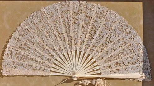 http://tinyurl.com/753xzls LARGE BOBBIN BELGIUM LACE FAN W/ OX BONE HANDLE