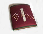 Comments: A Belgian pillow with triangular base. Seller says it is from Bruges. It does not have the bobbin extension piece. One drawer in the base. The red cover with green tape is undoubtedly an addition of the lacemaker – these were usually covered in white canvas, and the worker put on whatever cover they liked. It looks like a good, serviceable piece of equipment, in very good condition for the age.