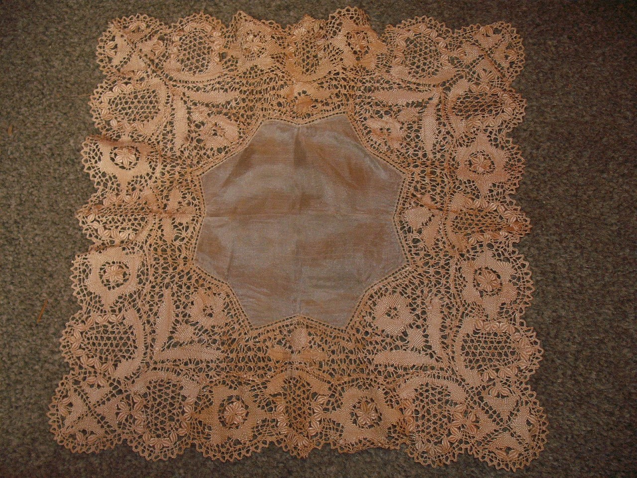 http://tinyurl.com/7wcd4sq Antique Maltese lace cream silk handkerchief