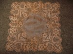 Comments: A Maltese handkerchief with extensive guipure work and a kind of spider ground. These motifs are a bit unusual for a piece this size – and it is quite small. I think it’s whiter than it looks fro the main photographs. Seller cites one small break on an edge, otherwise good condition. Note the silk center, typical of Maltese handkerchiefs.