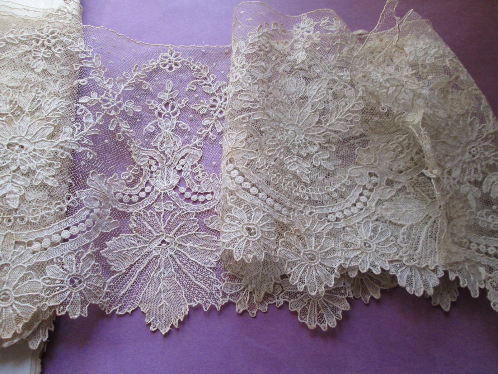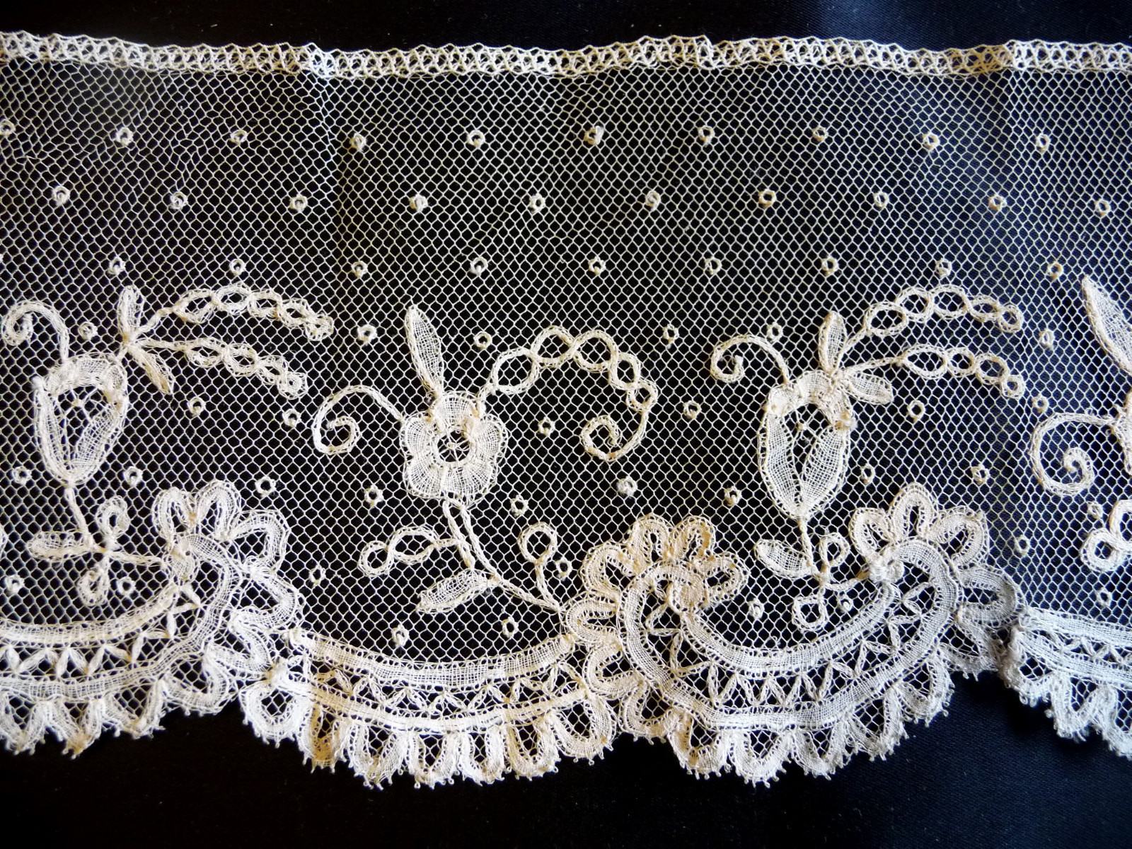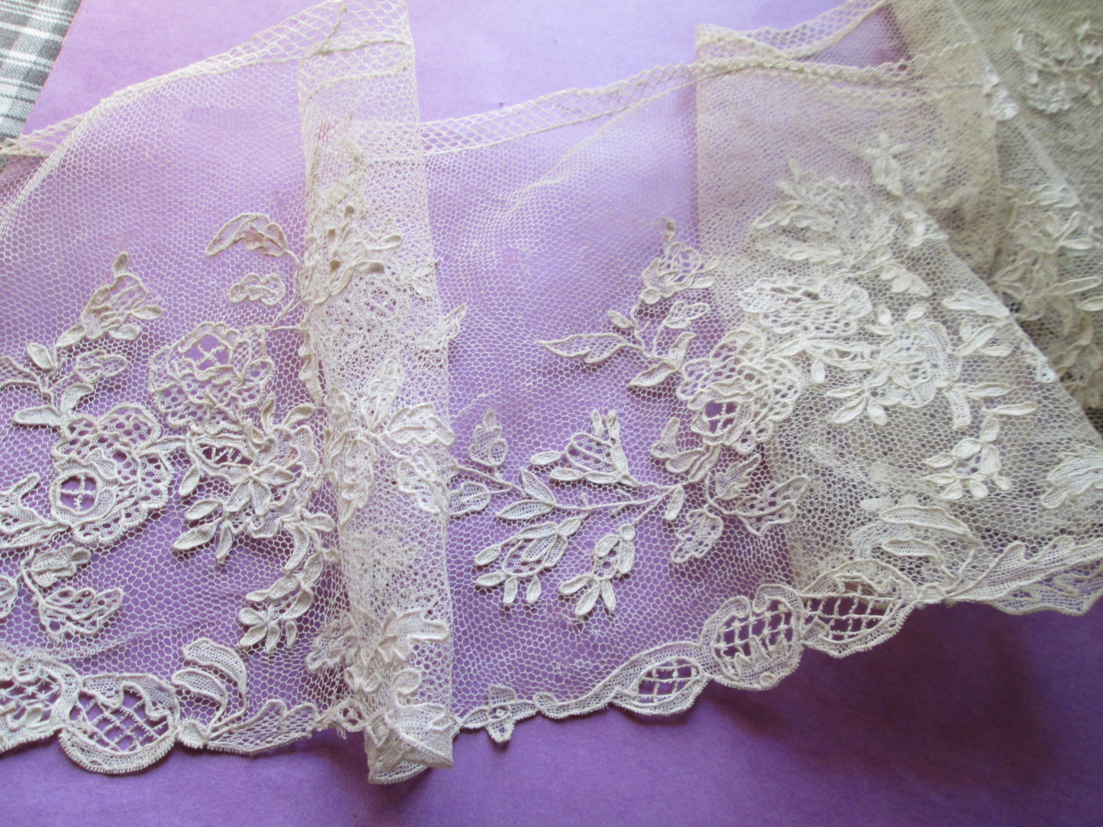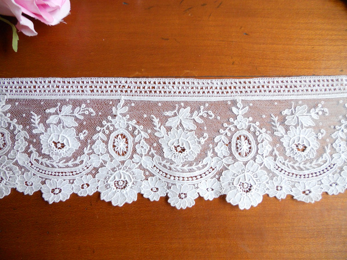 http://tinyurl.com/8x63dl7 lace edging Brussels bobbin lace on net 92″ long x 31/2″ wide