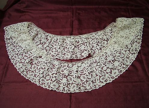 http://tinyurl.com/6q6ye32 SUPERB LG HandMade Antique Vtg BRUSSELS POINT DE GAZE LACE BERTHA COLLAR