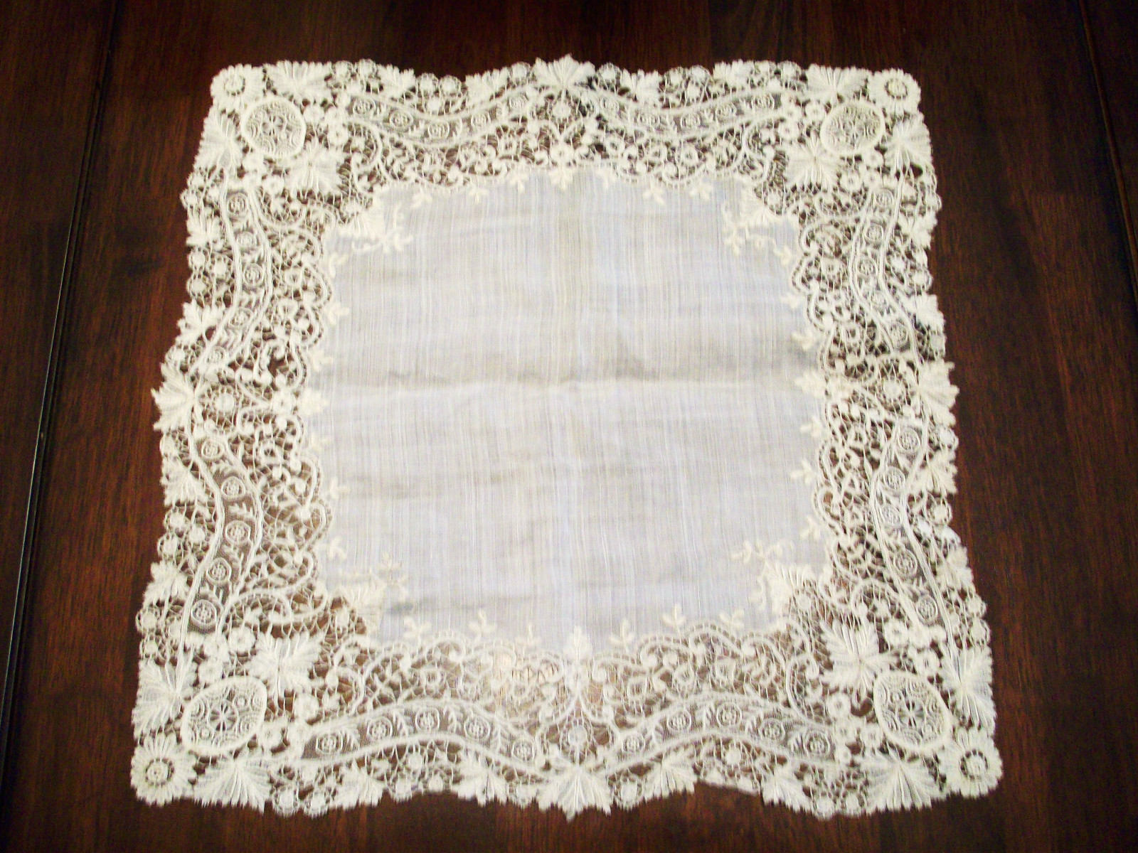 http://tinyurl.com/74vb8k9 Vintage Ladies Wedding Hand Embroidered Brussels Lace Hankie
