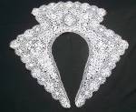 Comments: Two similar Irish Crochet collars from the same seller, so I’ll put them together. Highly likely they are from the same manufacturer. Both are quite nicely done, the first with heavy motifs around the edge, the second more a Rose of Sharon/horseshoe pattern. Both are in excellent condition. They could be child size, or maybe just small collars.