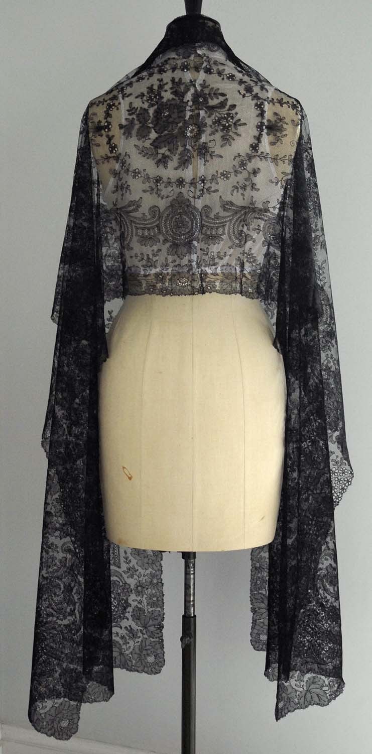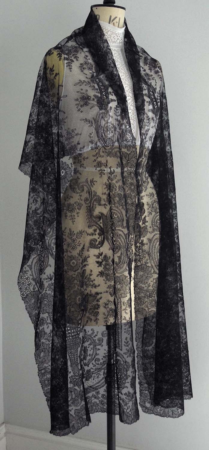 http://tinyurl.com/6po9mm2 Large antique/vintage black lace shawl /stole
