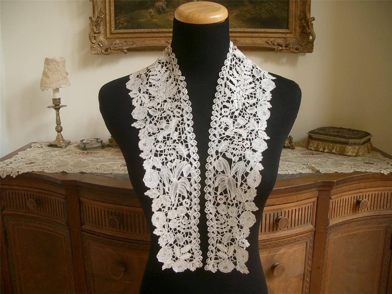 http://tinyurl.com/85vhvy4 BELGIAN LATE 19THC HANDMADE WHITE TAPE LACE COLLAR 98×18 CM ADORABLE