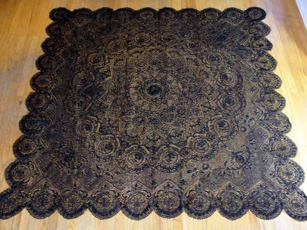 http://tinyurl.com/cxthoq5 Antique Handmade Maltese Bobbin Lace Tablecloth or Shawl in Black silk c1850