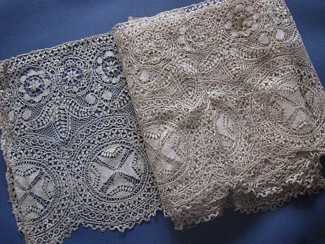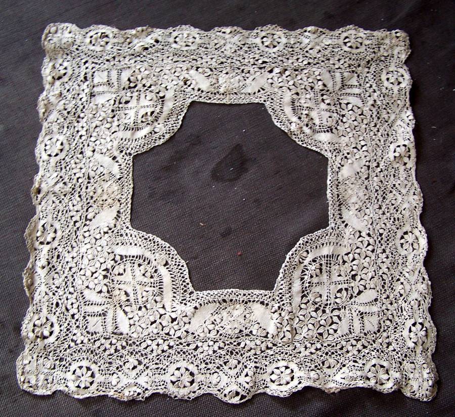 Comments: More Maltese – a handkerchief border with good guipure work. It looks a bit wrinkled in the photos, but from the description and photos it seems to be in very good condition.