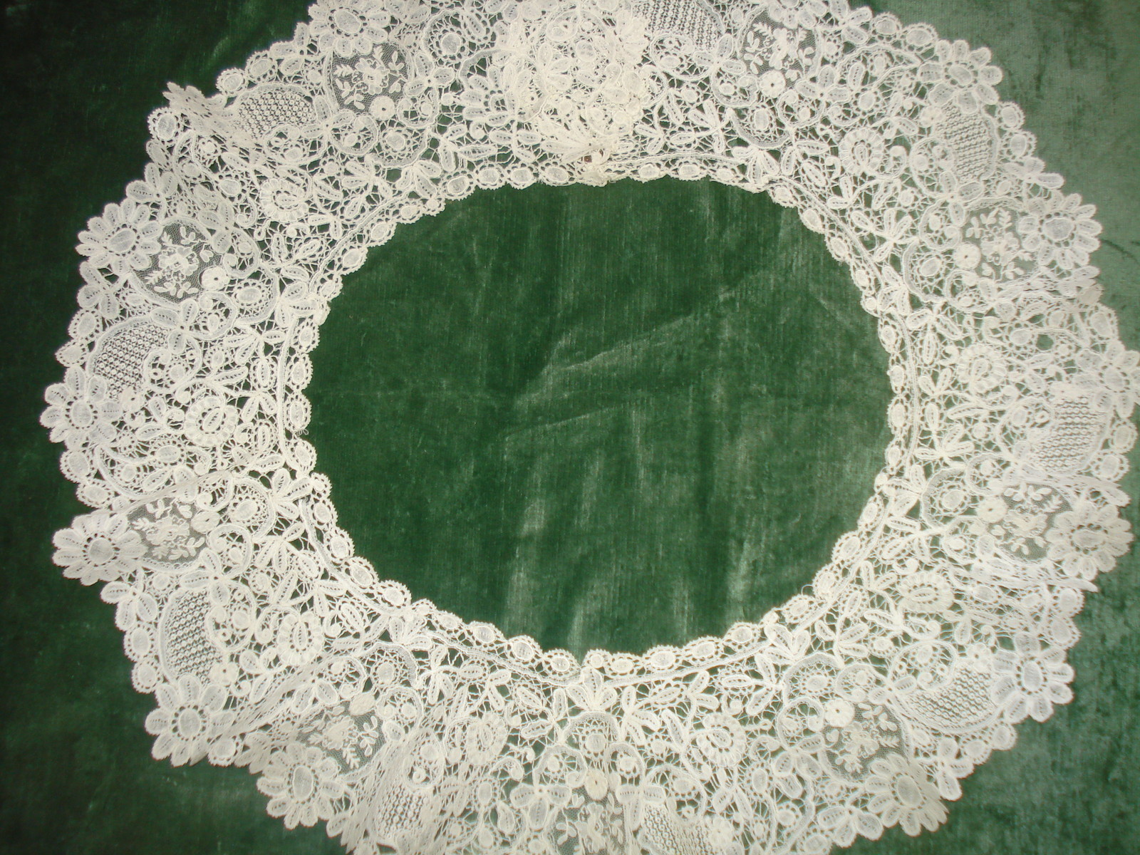 Comments: A Duchesse de Bruxelles collar, raised petal roses in the Point de Gaze inserts. Typical 2nd half 19th century design, middle market. The condition appears very good, I don’t see any problems from the photos.
