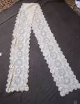 Comments: A long rectangular scarf of Maltese. Good design in the center roundels, and good guipure work along the inner border. I like how the border is worked around a square corner at the ends rather than the more usual around ends. Condition appears very good from the photos, I see a few loose threads, but nothing major.