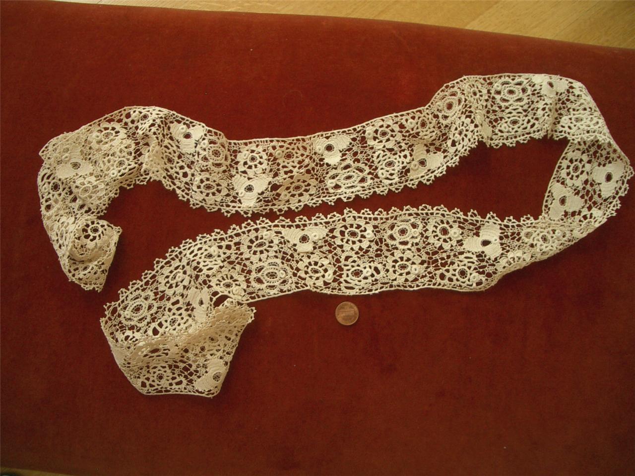 http://tinyurl.com/8g2v4q2 SUPERB UNIQUE WIDE 59in HANDMADE Antique Vtg IRISH CROCHET LACE *DOLLS
