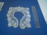 Comments: A Brussels Duchesse collar with short lappet ends. A fairly simple design that works nicely. No raised work in the Point de Gaze inserts. Overall condition very good from what I can see in the photos, maybe a little separation here and there.