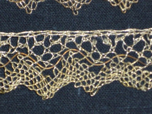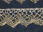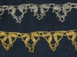 Comments: These metallic laces are typically simple designs as you often see in this kind of lace – it’s a clumsy thread to work with and you don’t need a lot of fancy technique to compete with the glitter. France or Spain, who knows, probably more toward France. I like the last one the best. Doesn’t come up for sale very often. All look in good condition, a little frayed along edges in a few areas.