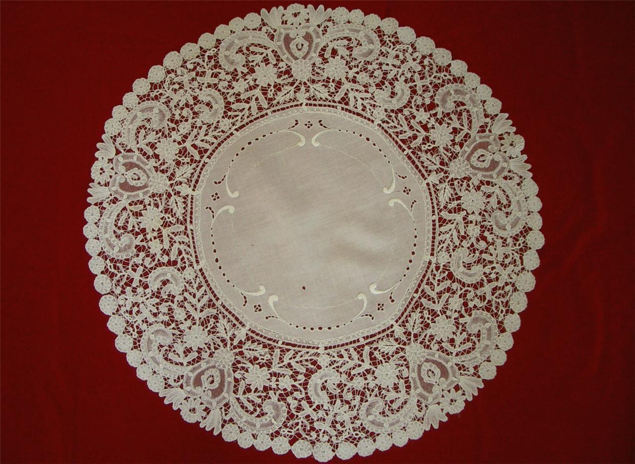 http://tinyurl.com/9jyjogd SUPERB HANDMADE 24in Antique Vtg BRUSSELS DUCHESSE LACE TABLECLOTH CENTERPIECE