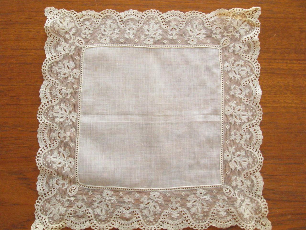 http://tinyurl.com/92uzsty Exquisite Antique Belgium Lace Handkerchief Hankie Royal Crosns Castles Net