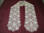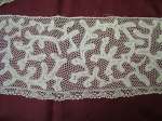 Comments: Same seller, a similar ‘Milanese’ piece. This one is narrower and shorter, but in better condition. The pattern in both is very similar, with the narrower one scaled down a bit. This one has an interesting edge which looks like it was made at the same time as the rest of the lace. I almost wonder if something similar wasn’t cut off the other piece. The edge has a more modern look, so I’m guessing these are later products. Condition on this one is good.