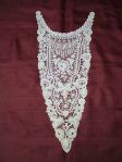 Comments: A Bruges Bloemwerk collar with pointed ends, demonstrating just how nice this lace can be. Well thought design and good technique. The condition looks very good from the photos – I can’t spot any problems. Seller does say it is a cream color while the photos look white, which is probably an effect of the background color.,