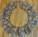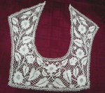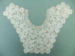 Comments: A Carrickmacross guipure collar with some embroidery on the muslin basically in the centers of flowers.. Note also the large pointed picots on the brides. Good design, but a bit worn in some of the muslin – hard to repair.