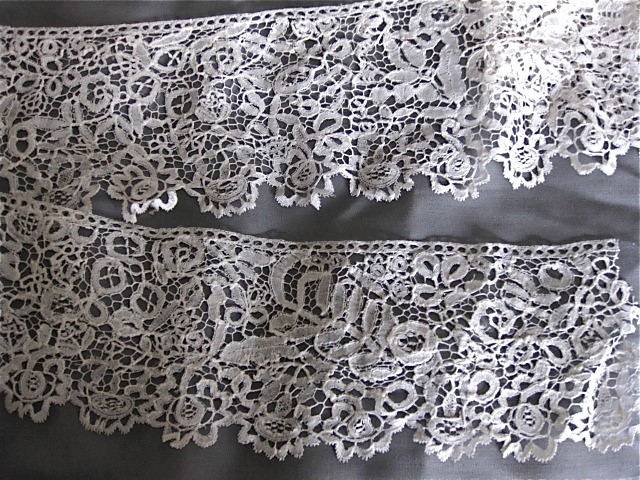 http://tinyurl.com/bum42bt 2 long deep flounces 18th c brabant bobbin lace from titled estate very ornate