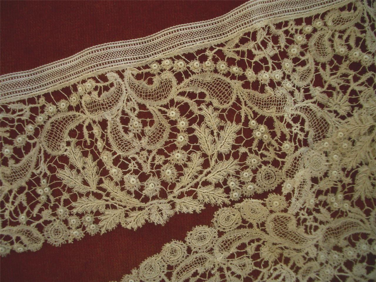 http://tinyurl.com/beknoyg SUPERB DAINTY 3.5inX90in HYANDMADE Antique Vtg ROSALINE PERLE LACE FLOUNCE