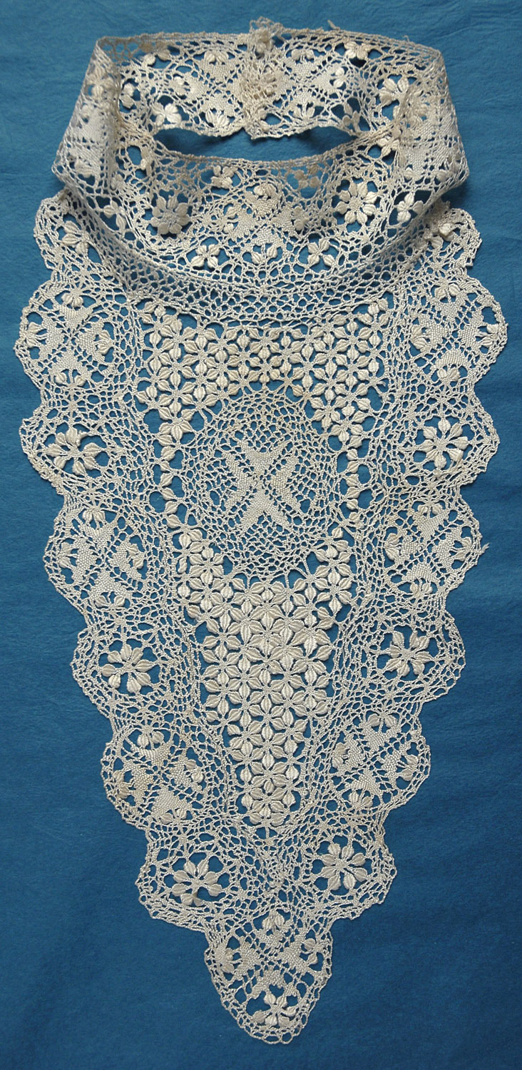 Comments: A Maltese frontpiece with attached choker collar. Good regular work with some fairly typical designs – condition looks very good. Seller cites one small repair to collar edge.