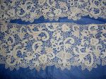 Comments: Two lengths of Brussels Duchesse, I’ll assume they are the same pattern, but not sure. What is unusual about these is that the Point de Gaze has no needle-made ground – it is just placed in the middle of the bobbinlace motifs. Seller cites 2 tiny stains, basically good condition (except for being cut).