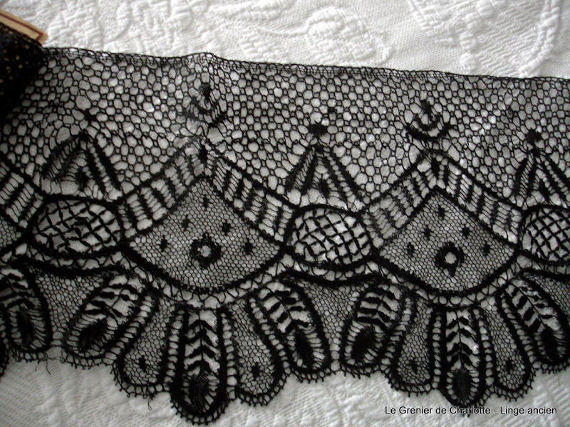 http://tinyurl.com/aoallup Antique lappet from Chantilly lace /black cotton /France