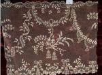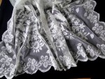 Comments: Tambour embroidery on machine net. I assume it is rectangular, quite a large size. It is difficult to see the hole pattern, but there is a larger spray of flower and leaves in at least one corner, and smaller sprays around at least 3 sides, maybe 4. Nice small sprigs in the main body of the net. A few small holes, not serious, overall good condition.