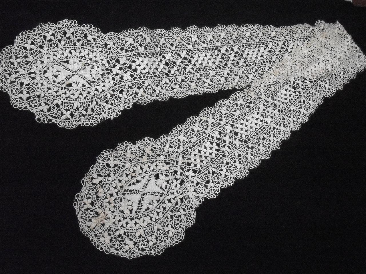 http://tinyurl.com/al9z7yr Antique vintage handmade Maltese lace lappet scarf 46 x 5&1/4 inches Beautiful