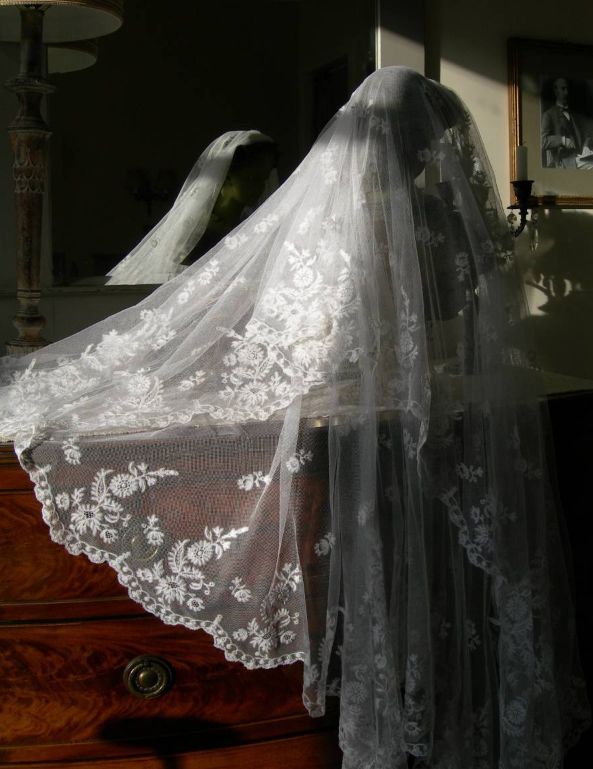 http://tinyurl.com/cfco8j3 Stunning antique Victorian tambour needle lace wedding veil 1890s