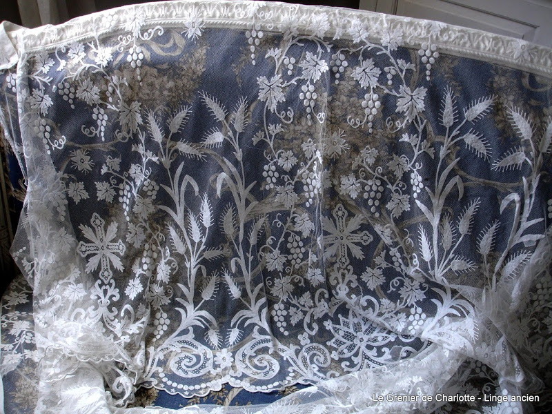 http://tinyurl.com/d25tcn9 Volant tulle brodé Rochet Aube Religion Prête Eglise Voile XIXe
