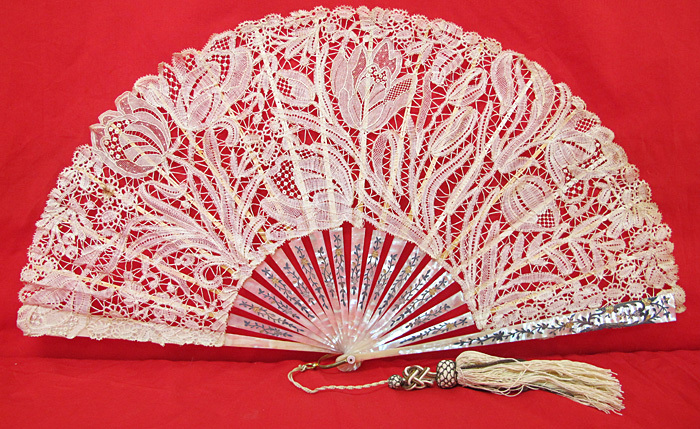 http://tinyurl.com/9wroa2l Antique 19th Century Mother of Pearl Mixed Brussels Lace Fan – GORGEOUS – NR yqz