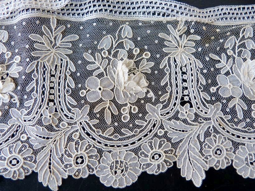 http://tinyurl.com/c57dbe5 POINT DE GAZE LACE 1860 265X11 CM ROSES & OTHER FLOWERS FINEST HANDMADE TREASURE