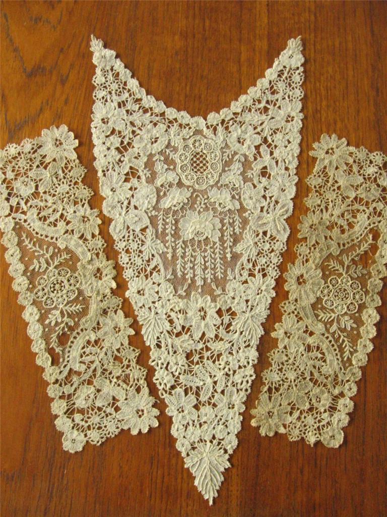 http://tinyurl.com/cgoak98 BEAUTIFUL Antique DUCHESSE LACE w/ POINT de GAZE Jabot Collar & Matching Cuffs