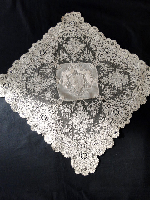 http://tinyurl.com/bhrhan2 ANTIQUE LACE- FINE BRUSSELS LACE W/HERALDIC APPENZEL