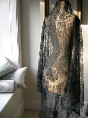 http://tinyurl.com/b23g98q HANDMADE Antique Vtg BLACK VICTORIAN FRENCH CHANTILLY LACE MOURNING SHAWL