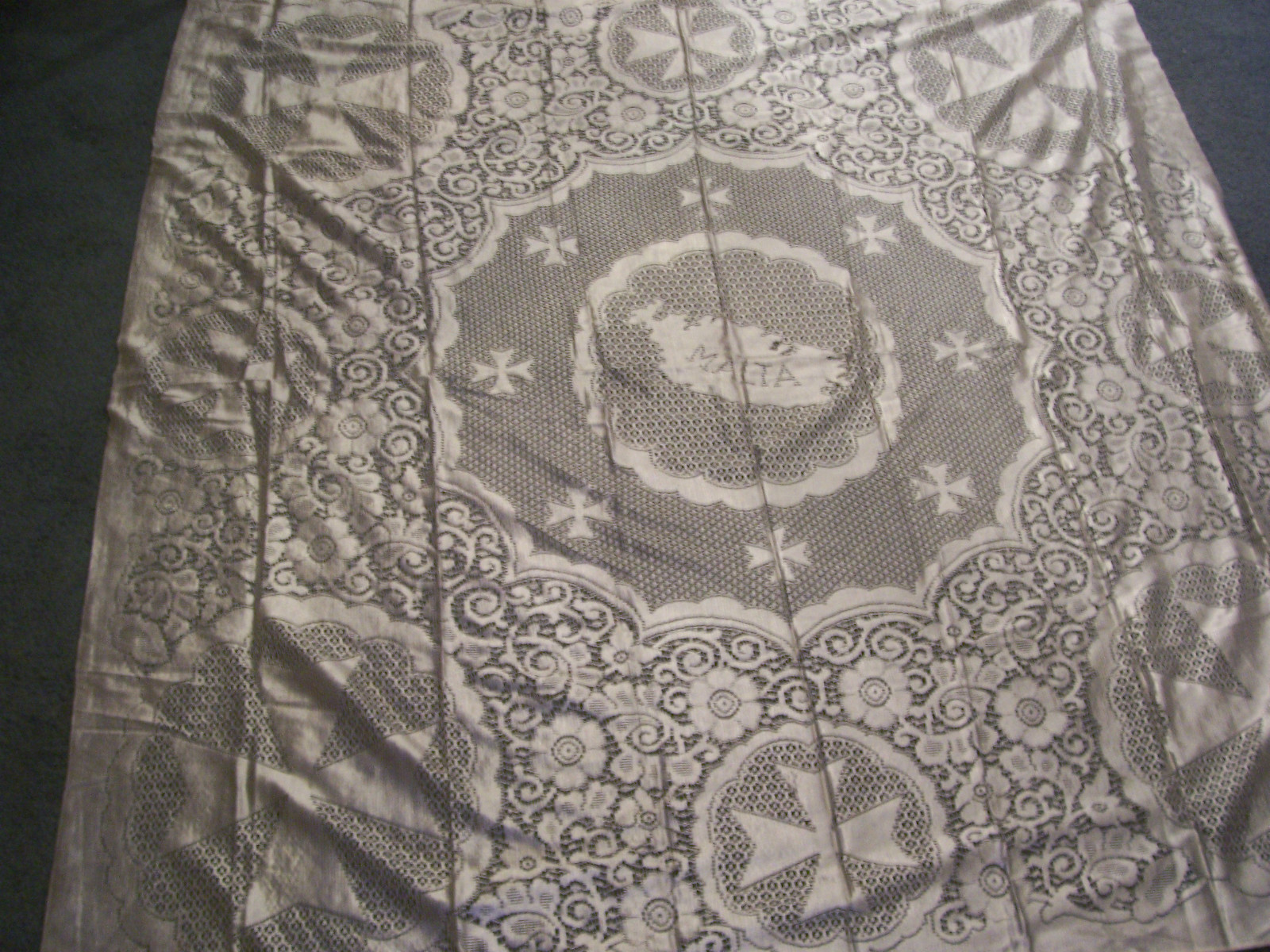 Comments: A rectangular Maltese scarf. The basic motif is a roundel containing a Maltese cross and some leaves – these are united by a little guipure work. The design is fairly simple, and it has a nice presence overall. Looks in very good condition, I don’t see any problems from the photos.