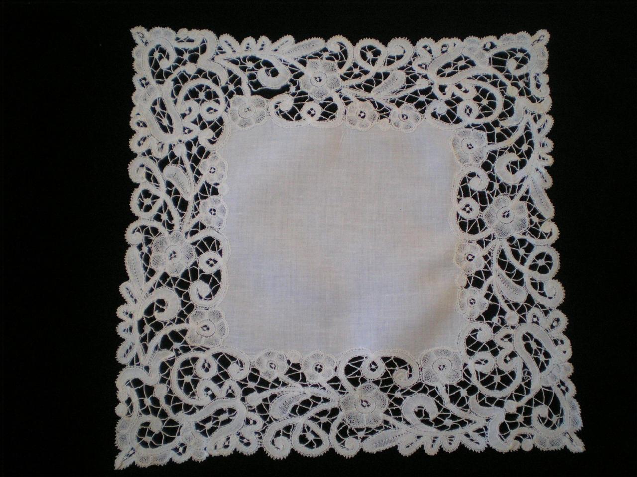 http://tinyurl.com/bpbyvwo Beautiful Antique Handmade Brussels Lace Fine Linen Handkerchief.