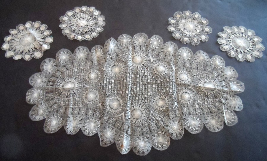 http://tinyurl.com/ccgjl6h D89 MUST SEE Antique Paraguay Nanduti Lace Doily & Coasters Set of 5 EXQUISITE