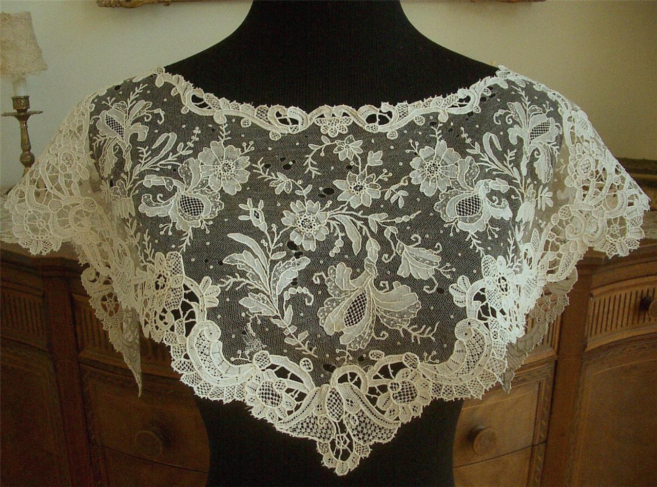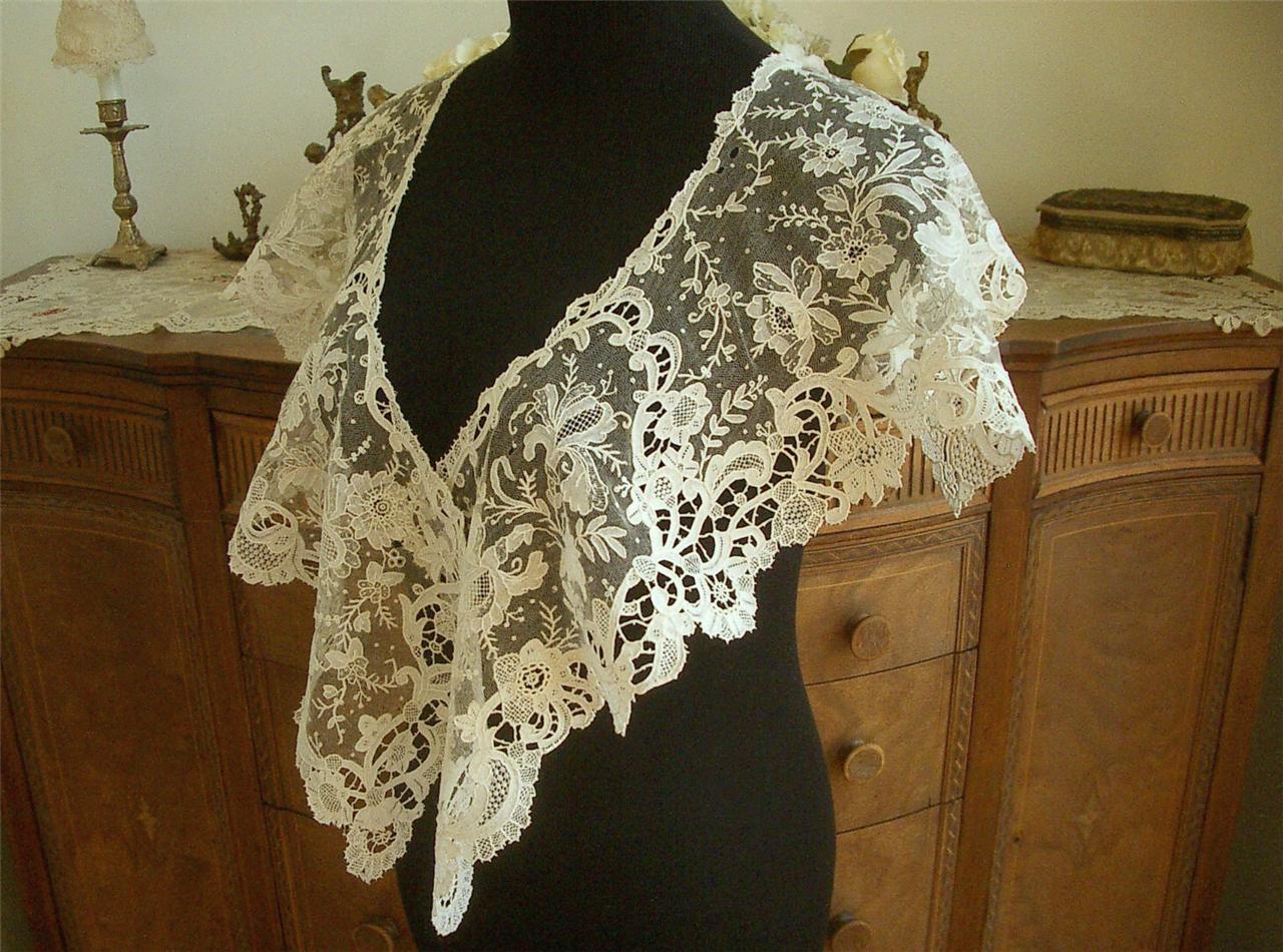 http://tinyurl.com/cerz6se SUPERB LG HANDMADE Antique Vtg BELGIAN BRUSSELS POINT DE GAZE LACE SHAWL COLLAR