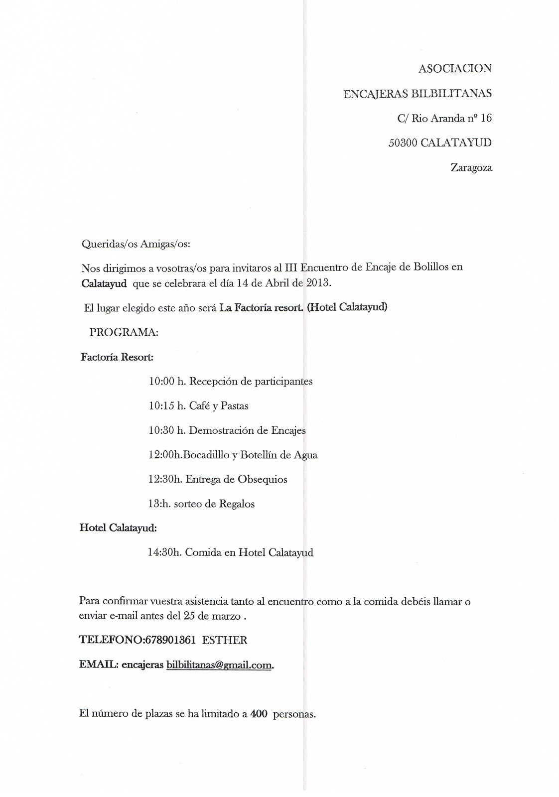 Email: encajeras biblitanas@gmail.com